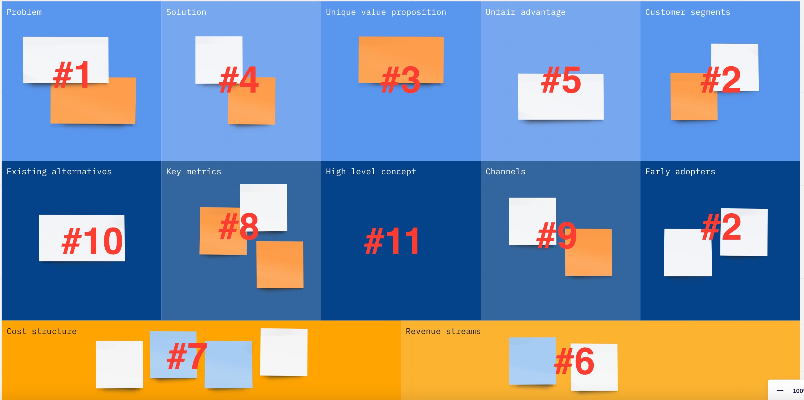 This is Miro’s lean canvas, I’ve added the sequencing numbers to it as they dont mention it, #10 and 11 are optional.